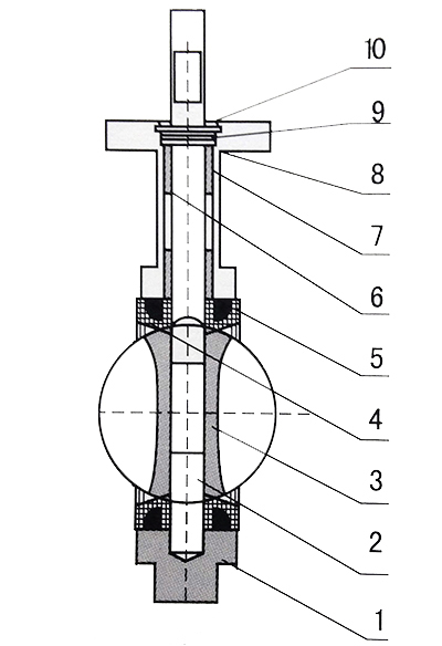 圖中標(biāo)注數(shù)字注釋:1表示閥體,2表示閥軸,3表示蝶板,4表示閥座,5表示填料,6表示襯套,7表示密封圈,8表示圓墊片,9表示對(duì)開(kāi)環(huán),10表示擋圈。