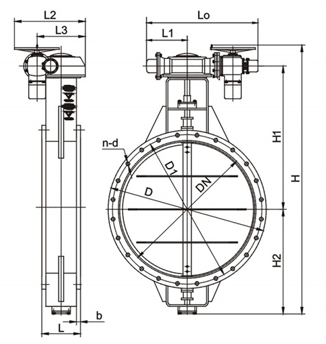 DN L D D1 b n-d H H1 H2 Lo L1 L2 L3