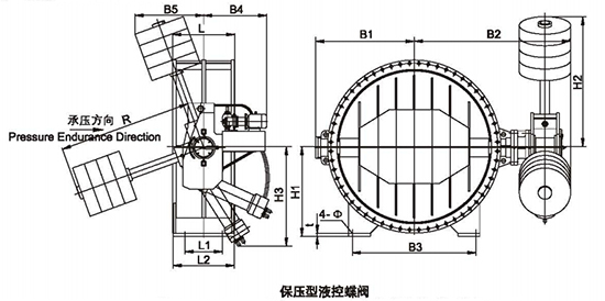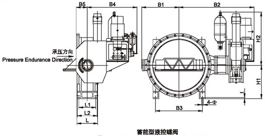 1、本蝶閥靠液壓驅動開啟,靠重錘勢能關閉。