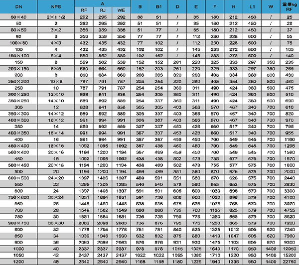 注意:上圖中的外形尺寸公稱壓力為CLASS150。