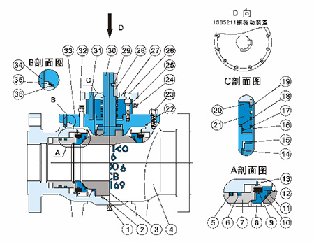 5、力矩小,密封可靠,球形結構的閥座與普通球閥不一樣,可以自動調(diào)整密封位置;