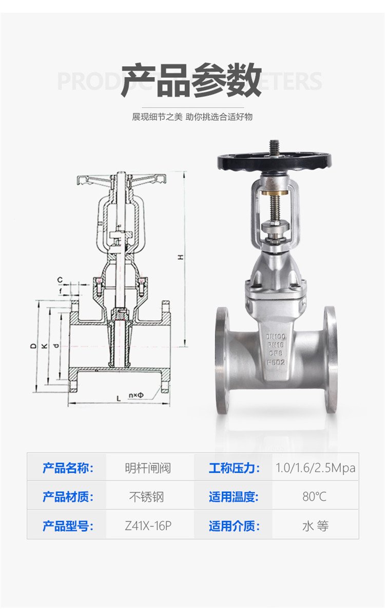 不銹鋼軟密封明桿閘閥Z41X-16P 堅固耐用