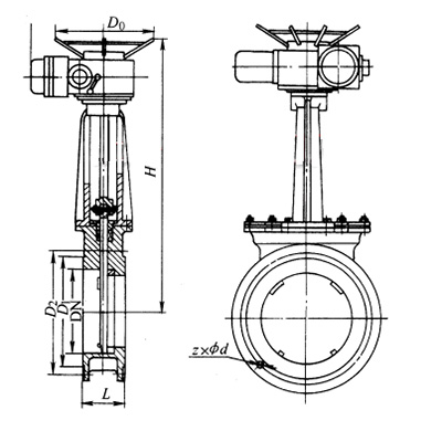 PN1.6MPa下的電動(dòng)刀閘閥外形尺寸